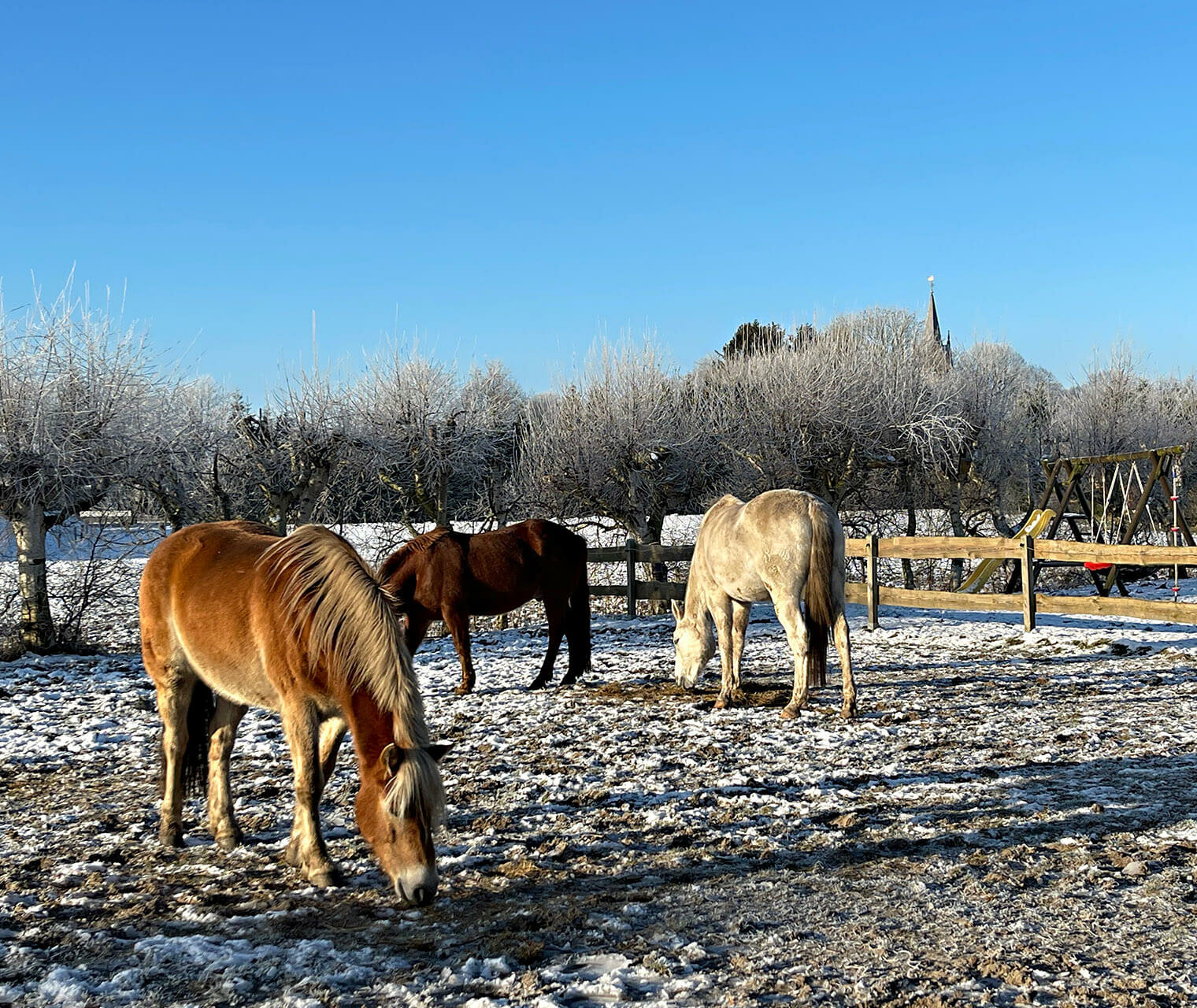 Bei uns erwartet Sie mehr als nur Erholung: Auf dem weitläufigen Hofgelände leben unsere Pferde, die Sie ganz entspannt von der Terrasse oder dem Balkon aus beobachten können. Dazu gesellen sich unsere Esel, Schafe, Ziegen, Hühner, Laufenten, Kaninchen, Katzen und natürlich unsere freundlichen Hofhunde – ein echtes Erlebnis für Groß und Klein.