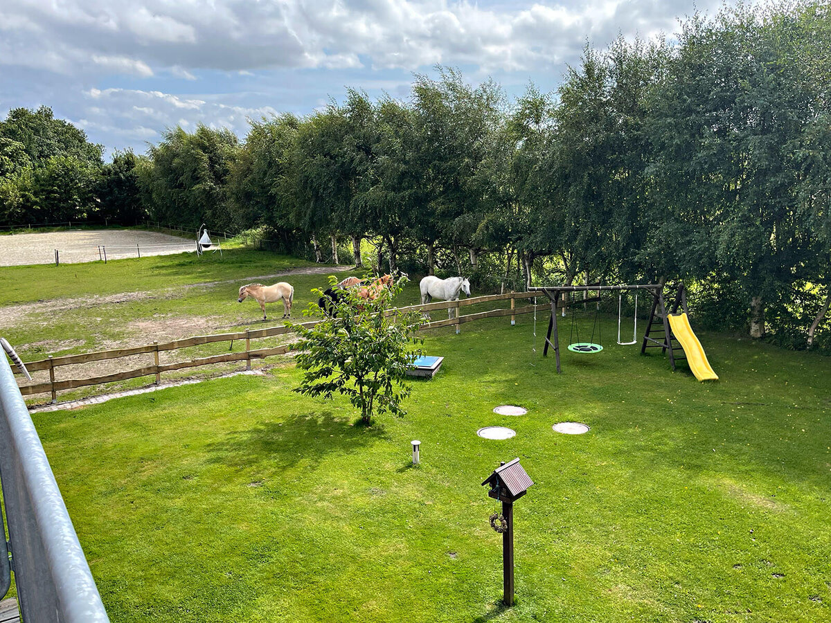 Bei uns finden Sie mehr als nur Entspannung: Auf dem großzügigen Hofgelände leben unsere Pferde, die Sie ganz entspannt von Ihrer Terrasse oder dem Balkon aus beobachten können. Dazu gesellen sich unsere neugierigen Esel, zutraulichen Schafe und Ziegen, fröhlich gackernde Hühner, flinke Laufenten, kuschelige Kaninchen, verschmuste Katzen – und natürlich unsere freundlichen Hofhunde. Ein echtes Erlebnis für Groß und Klein! Fühlen Sie sich wie zu Hause – und gleichzeitig ganz weit weg vom Alltag.