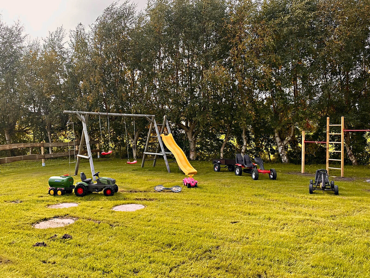 Unser weitläufiger Garten lädt zum Entspannen und Spielen ein. Ob beim Toben auf der Wiese, beim gemütlichen Zusammensitzen an der Feuertonne oder beim gemeinsamen Grillen am Abend – hier ist für jeden etwas dabei. Ein besonderes Highlight für Kinder sind unsere Gokarts und anderen Fahrzeuge, welche für jede Menge Spaß und Bewegung sorgen.