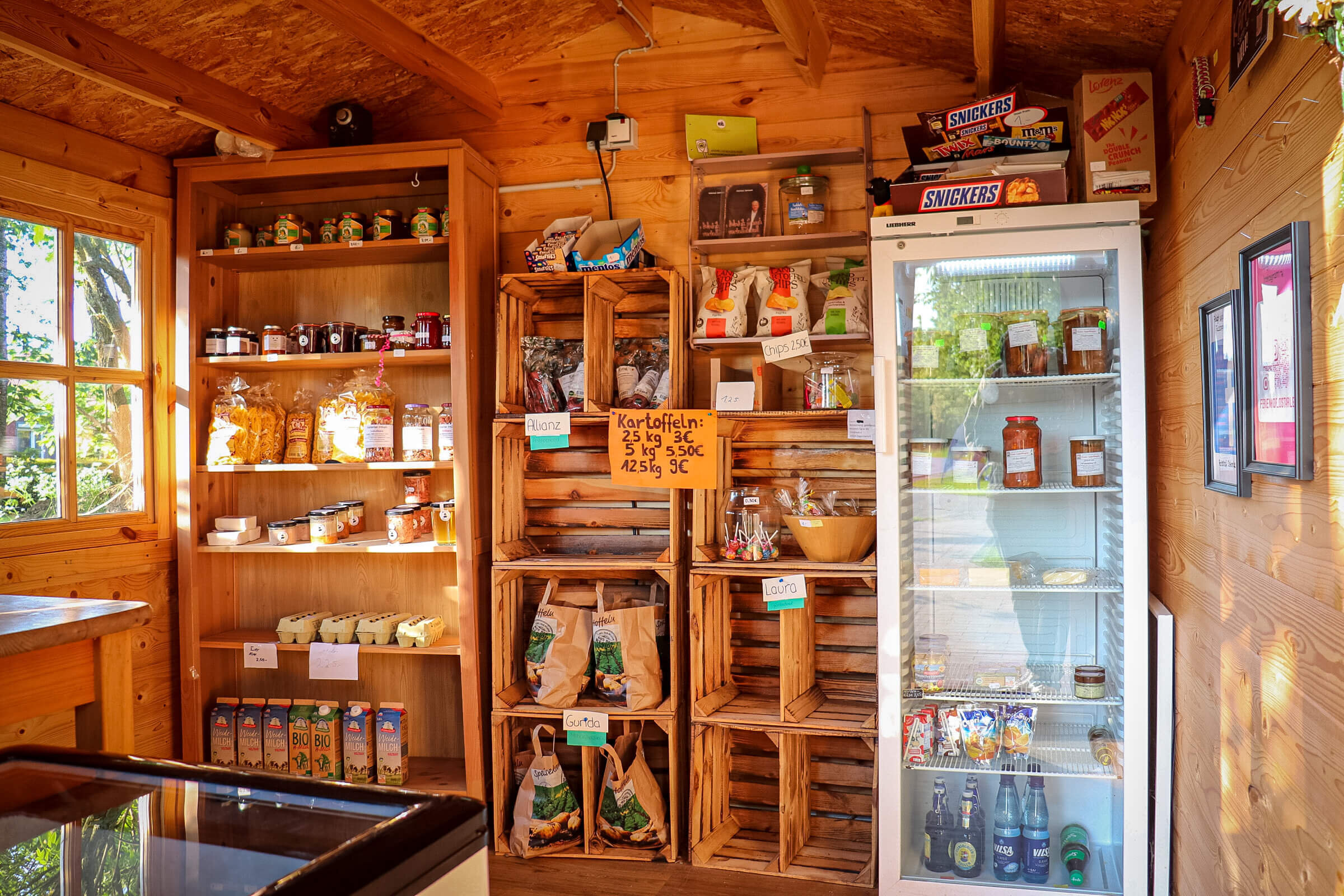 In unserem kleinen, gemütlichen Hofladen finden Sie regionale Produkte, wie zum Beispiel Eier, Kartoffeln, Marmelade, Eis und noch vieles mehr. Außerdem bieten wir auch einige Heiß- und Kaltgetränke an – ideal für eine Rast mit dem Fahrrad oder auf einem Spaziergang. Wir haben zahlreiche Sitzgelegenheiten und ein WC steht ebenfalls zur Verfügung. Für die Kleinen gibt es direkt nebenan einen kleinen Spielplatz zum Austoben.