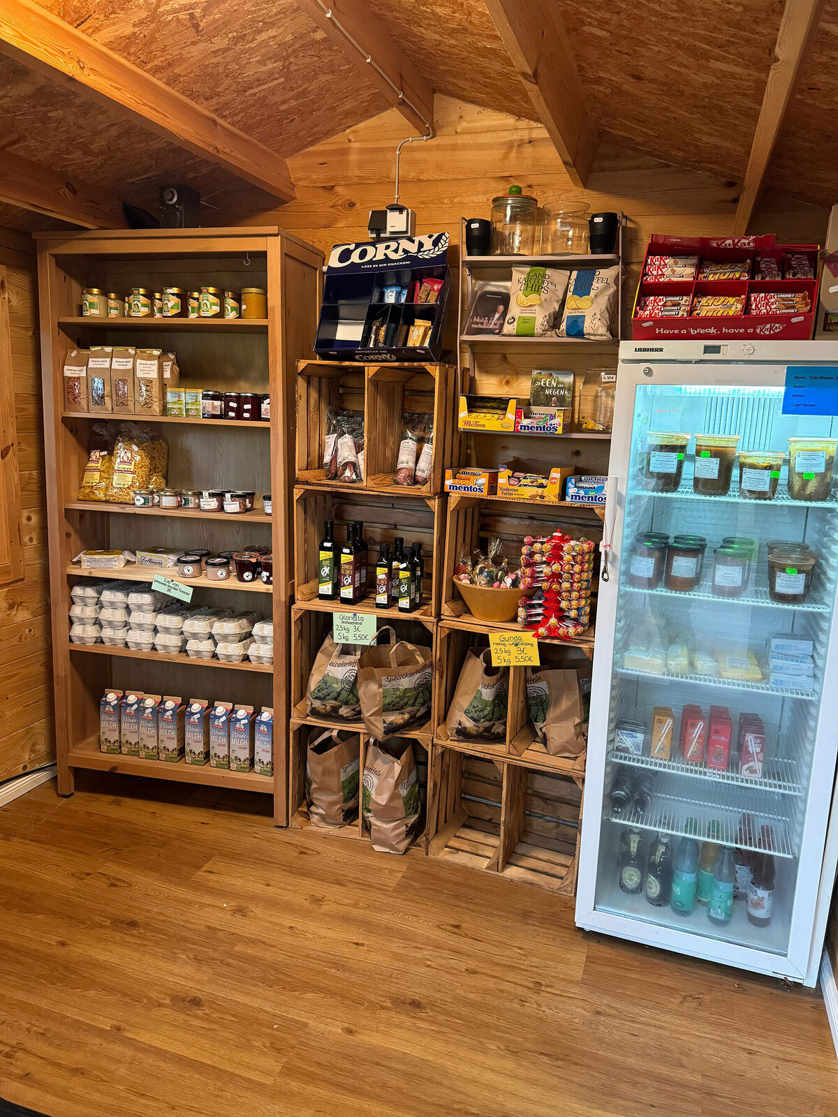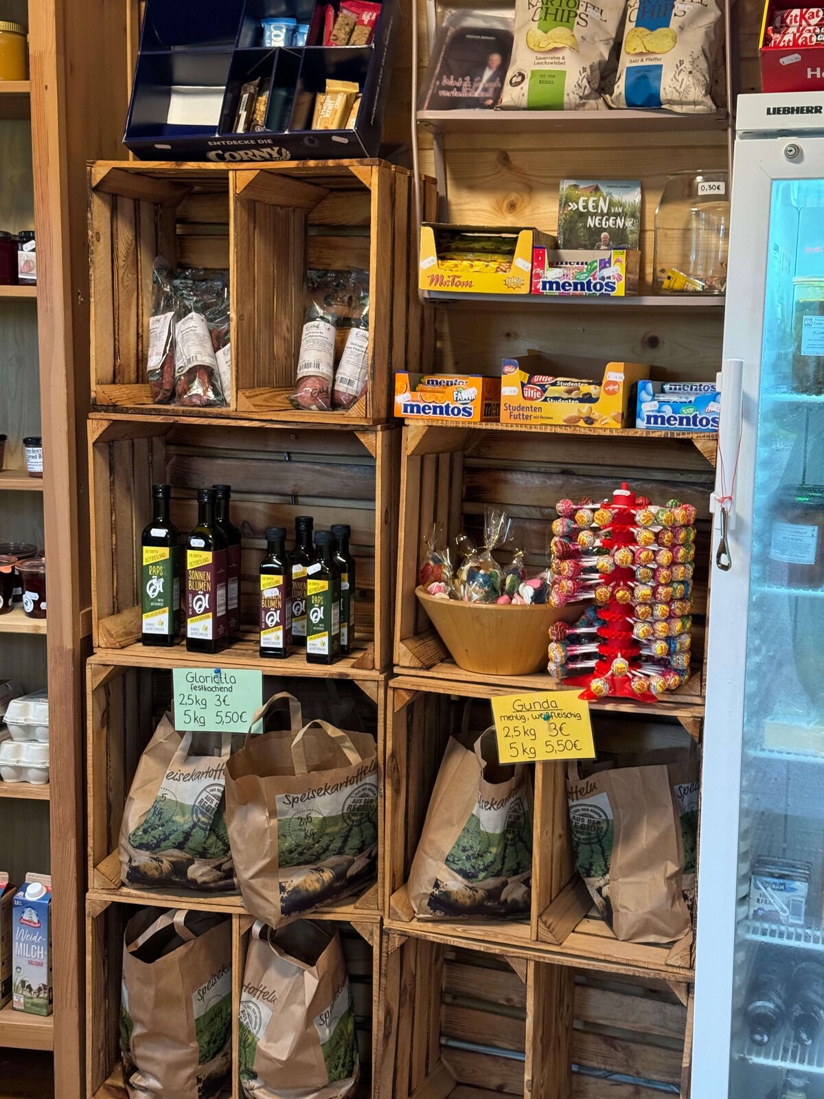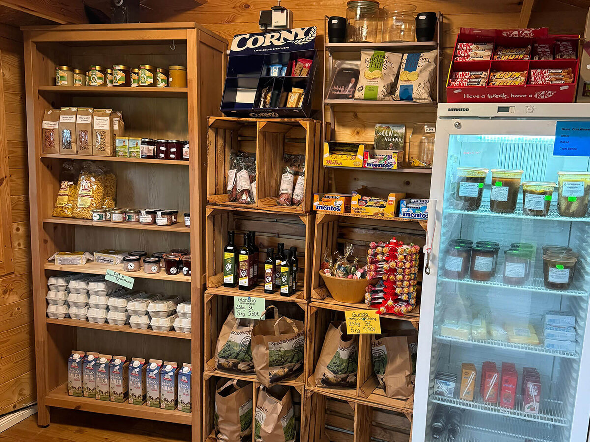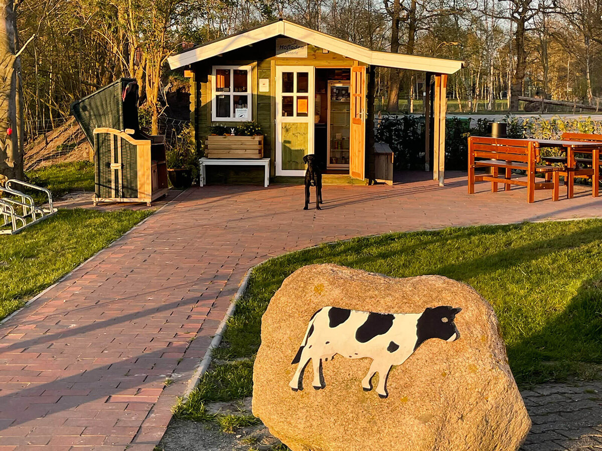 In unserem kleinen, gemütlichen Hofladen finden Sie regionale Produkte, wie zum Beispiel Eier, Kartoffeln, Marmelade, Eis und noch vieles mehr. Außerdem bieten wir auch einige Heiß- und Kaltgetränke an – ideal für eine Rast mit dem Fahrrad oder auf einem Spaziergang. Wir haben zahlreiche Sitzgelegenheiten und ein WC steht ebenfalls zur Verfügung. Für die Kleinen gibt es direkt nebenan einen kleinen Spielplatz zum Austoben.